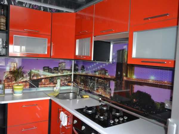 Дизайнеры советуют стеклянную панель для оформления маленькой кухни или кухни в хрущевке. Отражающий эффект приводит визуальному расширению пространства. Если стекло глянцевое, то помимо этого происходит световое отражение и помещение делается светлее.