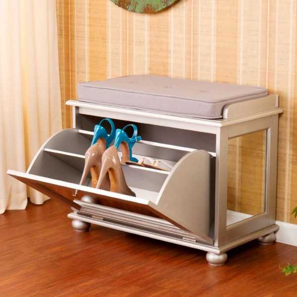 Если приобрести скамью или пуф с откидным сиденьем, многое можно будет хранить внутри. А под обычной скамейкой опять же можно использовать корзины и коробки.