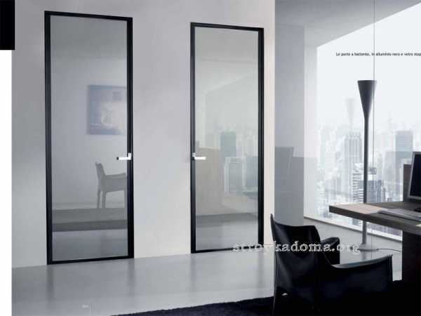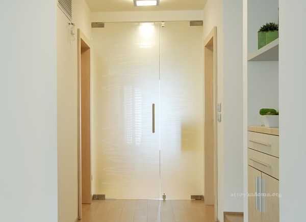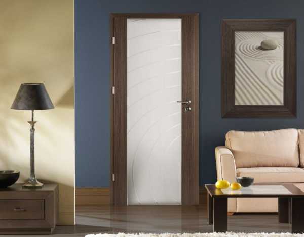 Дверное полотно может быть полностью или частично сделано из стекла. Нередко используется цветное стекло, иногда украшенное узорами – это позволяет добиться очень интересных эффектов.