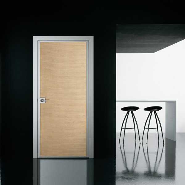 Ламинат не боится влаги и перепадов температуры, обладает привлекательным видом с имитацией дерева. Ламинированную дверь можно спокойно чистить химическими средствами. При всех достоинствах цена остается весьма демократичной.