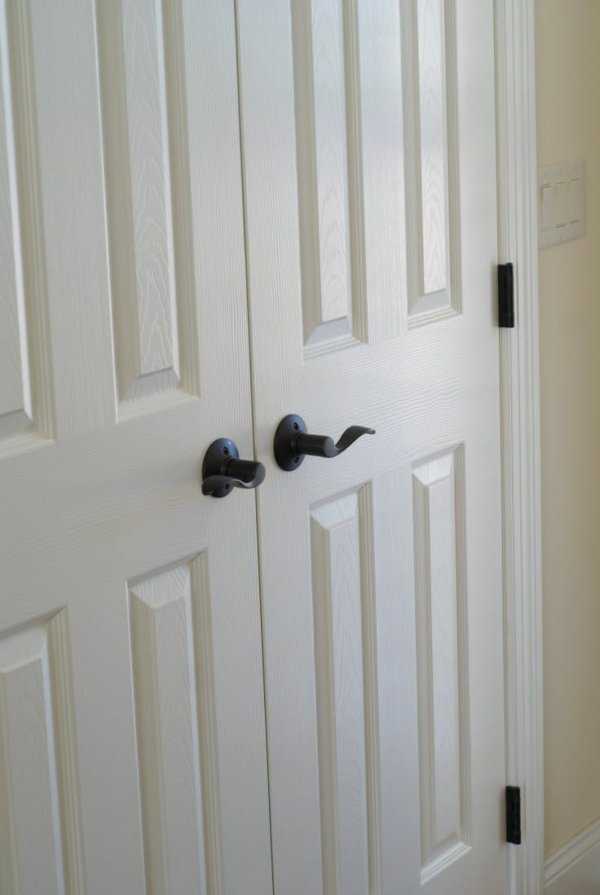 Если все нормально и нет ничего лишнего, тогда занимаемся врезкой замка и ручки на дверь. Для начала, их необходимо подобрать в цвет вашей межкомнатной двери.
