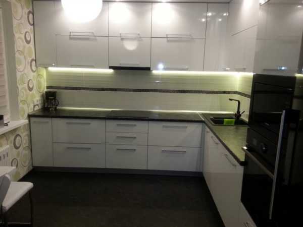 - скрытая подсветка фартука и столешницы.