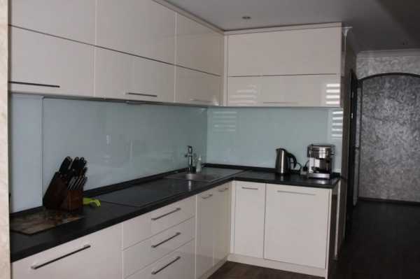 Может быть, как прозрачным бесцветным, так и ярко окрашенным, но без рисунка. Стильно смотрится гарнитур, когда фартук и столешница выполнены в одном цвете. Что касается материала, ограничений нет: плитка, искусственный камень, закаленное стекло.