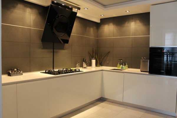 Варианты дизайна фартука для минималистичной кухни такие: