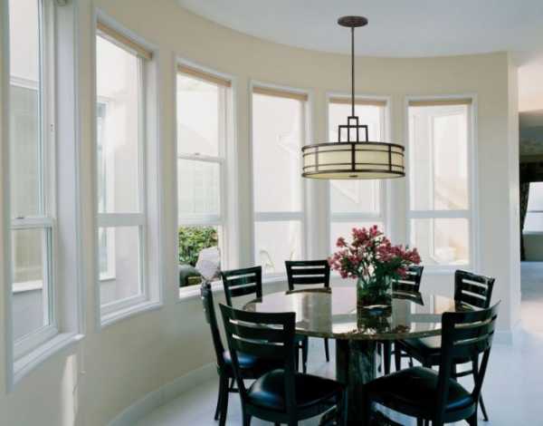 - большую люстру простой формы над обеденным столом (в виде шара или конуса)