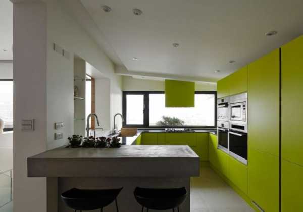 Мягкий зелёный оттенок придаёт кухне свежесть.Размеры помещения