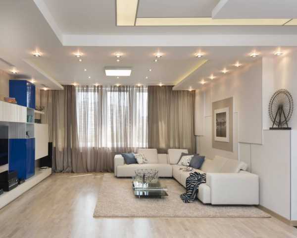 В приоритете натяжные потолки. Также монтируют многоуровневые конструкции для лучшей передачи игры света.