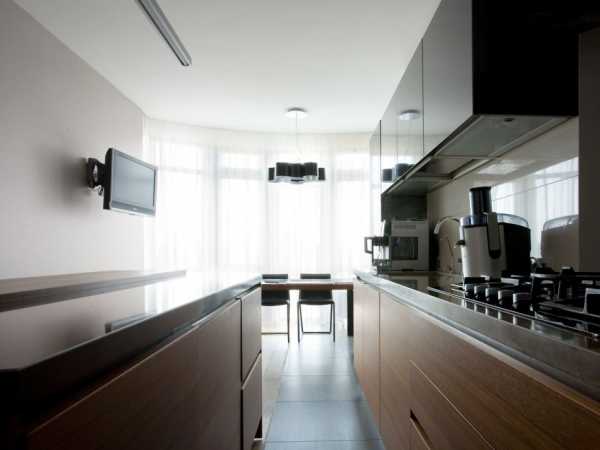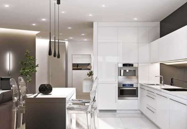 Кухня может быть совмещена с гостиной, так как квартира в стиле минимализм подразумевает такую планировку. Независимо от того совмещены комнаты или нет, главное, чтобы на кухне присутствовали функциональные вещи. При этом не стоит забывать, что кухня должна быть разделена на зоны, для этого используются разные текстуры и цвета.