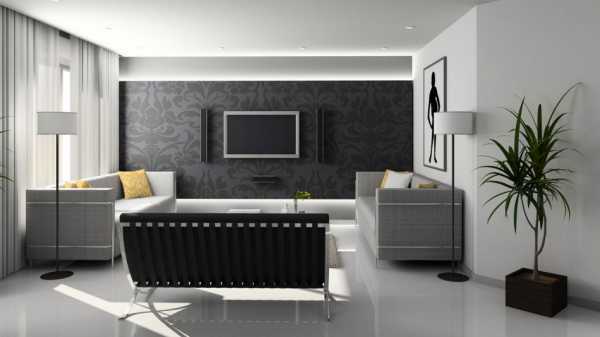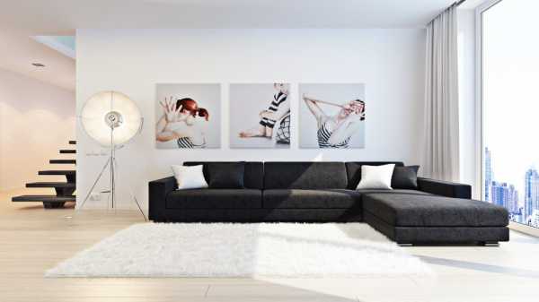Классическое сочетание черного и белого в оформлении гостиной в стиле минимализм