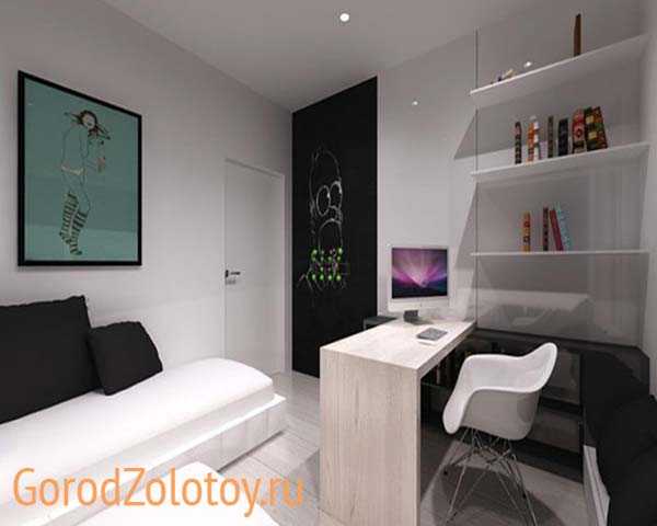 Помещение не должно быть перегружено предметами интерьера. В комнате должна присутствовать только самая необходимая мебель. Поэтому дизайнеры советуют использовать встроенные конструкции. Шкафы, вмонтированные в стену – удачное решение. В целом мобильная мебель, которую легко спрятать, в приоритете. Форма мягкой мебели – это четкие геометрические фигуры. Резьба по дереву, точно не будет актуальным элементом декора.