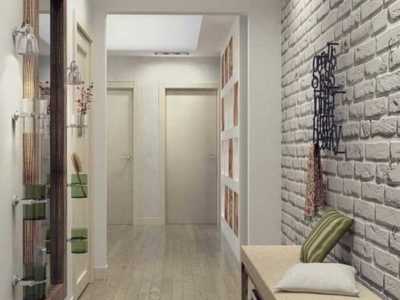 Приятное впечатление о прихожей создает нейтральная отделка и гармонично подобранные детали. Как правило, маленький коридор оформляют в светлых белых и древесных тонах, а в более просторном — возможно применение стальных, глянцевых черных, темно-коричневых элементов. Мебель зачастую перекликается по фактуре с дверными полотнами, но встречаются варианты, когда шкаф от пола до потолка имитирует однотонную стену: белоснежную, мраморную или даже зеркальную. Если предусмотрена открытая вешалка, в ее нижней части обустраивают обувные полки и невысокую скамейку-софу.