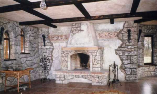 Он не должен быть, как в средневековом замке или в современном интерьере. Камин в рустике — это домашний очаг, который может выполнять функцию обычной плиты. Отделка выполняется из камня.