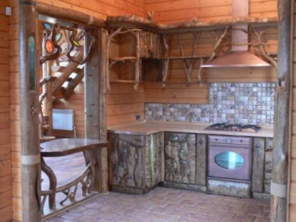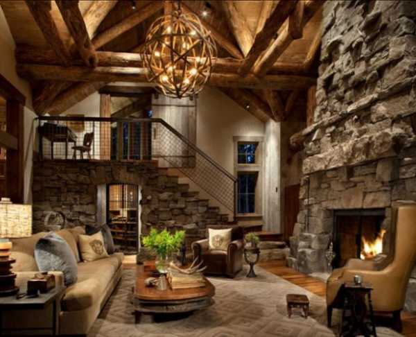 Дизайн интерьера в стиле рустик с элементами декора из грубого дерева