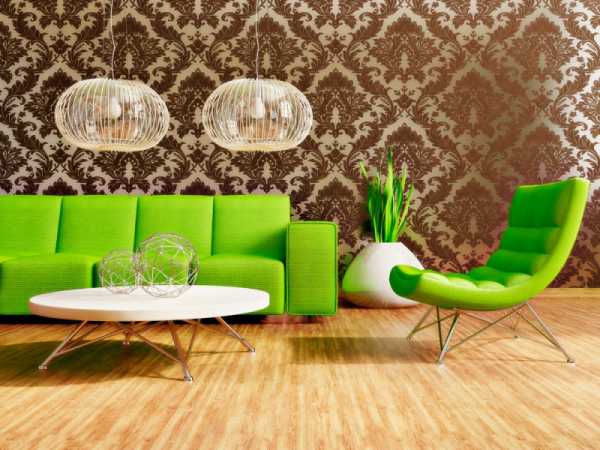 - укрупненные орнаменты на обоях;