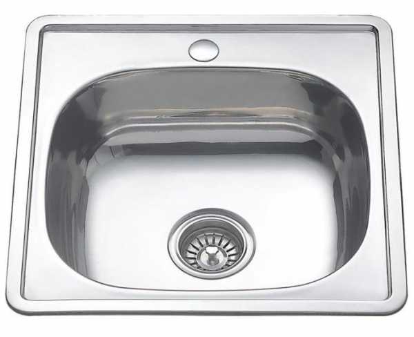 Квадратная мойка размерами 503х503х190 мм с вместительной чашей, скругленными углами и переливом. Поверхность полированная. |