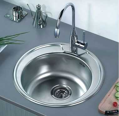 Раковина с круглой чашей компактна и отлично впишется в интерьер небольшой кухни. Она вместительная и глубокая, а стоимость ее вполне демократична. В магазине на ценнике товара должны указываться два размера: диаметр чаши и размер самой мойки с бортиками. При покупке убедитесь, что мойка с выбранным размером чаши подойдет вам. Круглые мойки-нержавейки зачастую имеют отверстие под смеситель, но вам следует помнить, что установить такую мойку вы сможете не по собственному усмотрению, а только в соответствии с тем, как это задумал производитель.