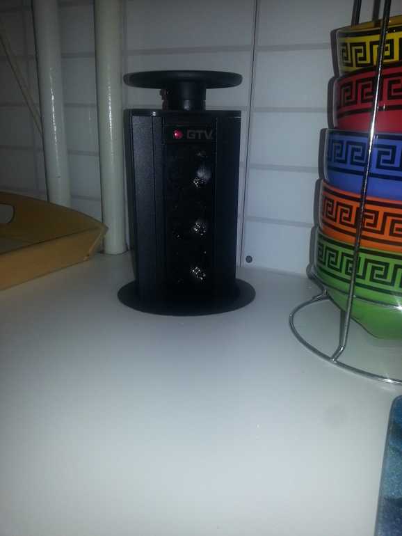 5. Далее встал вопрос о розетках, которые у нас неожиданно оказались под столешницей. Слава Богу, есть умные люди, придумавшие встроенную розетку по 1700 руб)