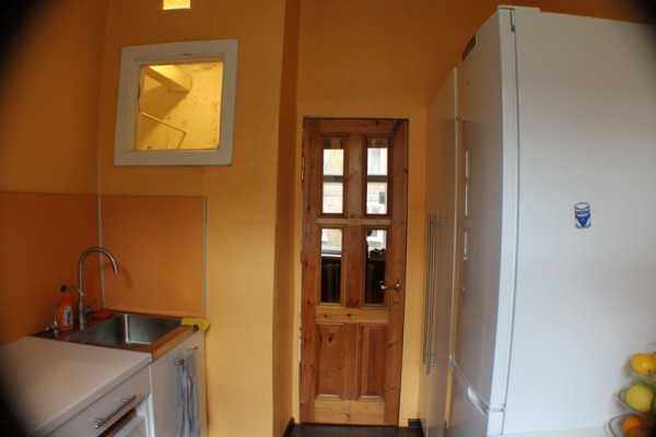 Панорамный снимок, пространство немного искажено, но видно всю кухоньку разом
