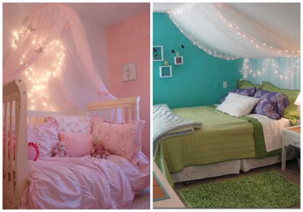 Огоньки придают балдахину по-настоящему сказочный вид.