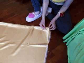 Как мы уже говорили, для такого навеса понадобится больше ткани, чем на предыдущий. Приготовьте полотно 5-6 м длиной, и 3 метра высотой. Так же как и на первом варианте балдахина, на этом обработайте края. Можно просто подвернуть два раза ткани и прострочить на машинке тонкой иголкой, а можно обшить красивой лентой ровный край.
