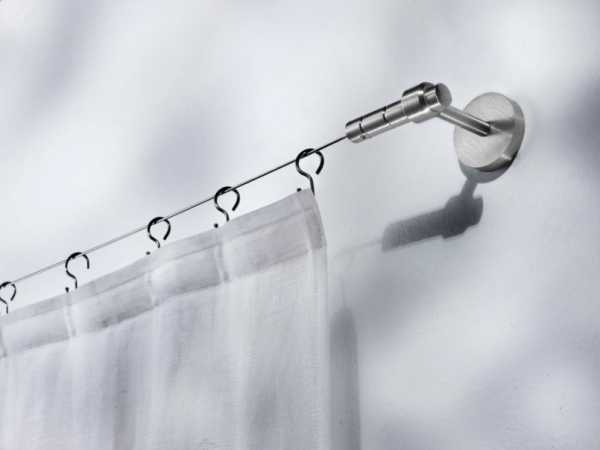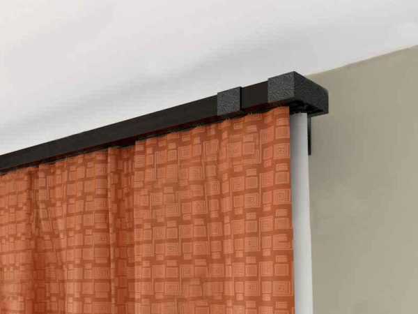 Занавеси крепятся на карнизы. По внешнему виду это палка с крючочками или зажимами. Они бывают потолочные и настенные. Эти два варианта отлично подходят для жилых помещений, но они могут иметь определенные нюансы: