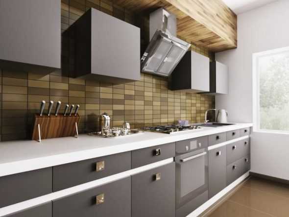 - Шкафчики должны хорошо вписываться в дизайн кухни и не создавать препятствий вентиляции помещения.