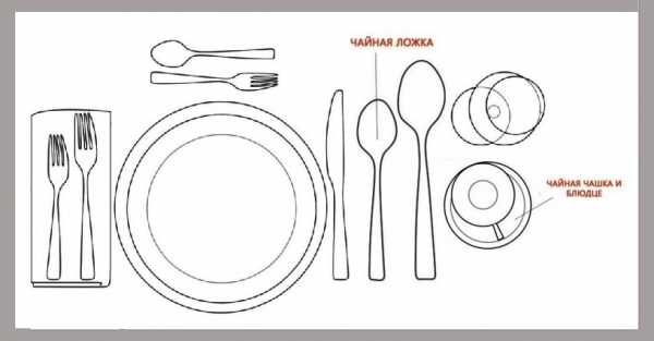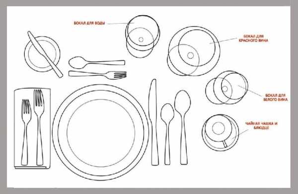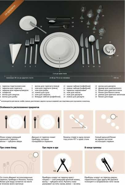 - приборы должны быть расставлены свободно, на одну персону выделяется 60 сантиментов пространства;