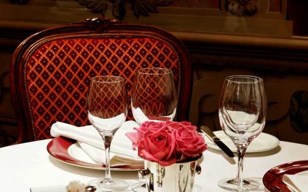 Подготовка стола к обслуживанию клиентов начинается с расстановки стульев. Здесь стоит придерживаться ранее упомянутого правила, согласно которого расстояние между посадочными местами должно быть не меньше 50 см. Если намечается романтический ужин на двоих, то выбирается небольшой стол, а стулья ставятся друг напротив друга.