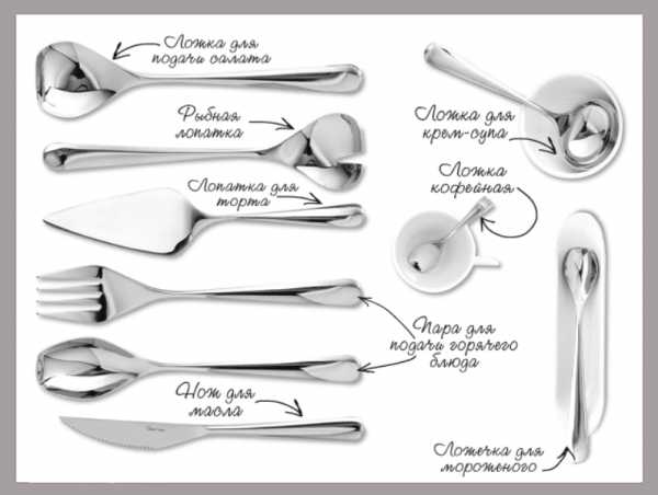 У каждого из этих элементов есть своё предназначение. Основное правило их использования – столовые приборы, расположенные с правой стороны от тарелки, нужно брать соответствующей рукой. Это относится и к предметам, размещённым слева. Приборы располагаются в той последовательности, в которой будут поданы блюда. Первыми используются элементы, лежащие по краям.