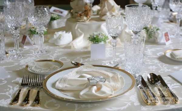 - бокалы ставят хрустальные, тарелки — фаянсовые, фарфоровые;