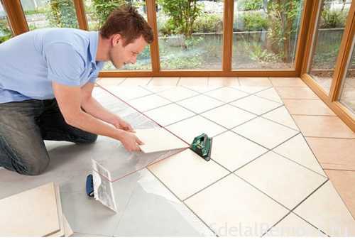 Смотрите отдельный видео-обзор как класть плитку на пол.