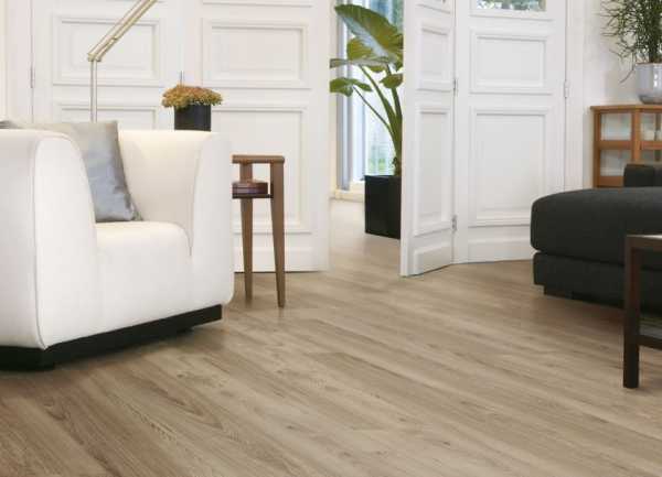 Прочные панели для пола выглядят, как натуральная древесина, но в принципе ее не содержат – только продукты деревообработки: ДВП, несколько слоев бумаги, поверх них ламинация из акрилатной или меламиновой смолы. В отличие от натурального дерева, ламинат не меняет конфигурацию в зависимости от влажности.