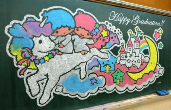 Правду говорят, что талантливые люди талантливы во всём. Работы этих ребят – прекрасный тому пример. В конкурсе участвовало около двухсот пятидесяти учеников, которые, вооружившись цветными мелками и специальными маркерами, дав волю фантазиям, рисовали всё то, на что хватало сил и возможностей от любимой многими горы Фудзи до сказочных пейзажей и дивных существ. И как жаль, что данные шедевры останутся лишь на снимках, а не на школьных досках, ведь рано или поздно, их попросту придётся стереть…
