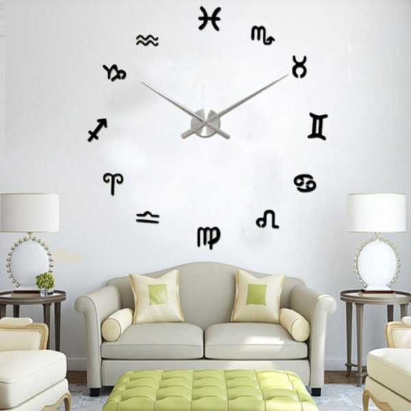 Оригинальные большие часы в гостиной могут быть во всю стену