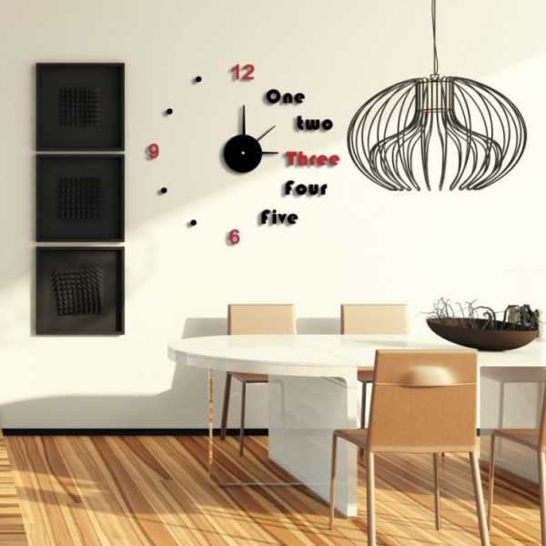 Поклонники минимализма недорого купят изделие, где циферблат отсутствует как таковой. При помощи специальной краски большие цифры нарисованы на стене.