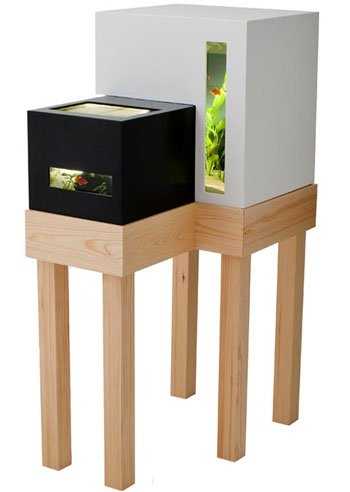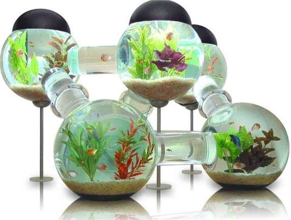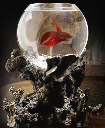 аквариумы-фонтаны. Состоит эта конструкция из керамической основы и круглого аквариума, часть воды из которого выливается, а затем возвращается к рыбкам.