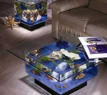 Если вы считаете кухонные островные столы со встроенными аквариумами изящными, вам должна понравиться идея использования для этой цели журнальных столиков. Компания 4 Fish Tank производит и продает подобные великолепные столики всевозможных форм, размеров и стилей. Их столешницы сделаны из стекла, чтобы вы могли наслаждаться, наблюдая за рыбками!