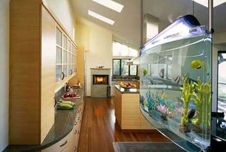 Размещать аквариумы на кухне стало какой-то тенденцией в последнее время. А в голову некоторых дизайнеров пришли особенно смелые идеи и концепции.