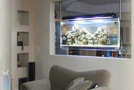 Встроенный в перегородку аквариум от Clayton Aquariums.