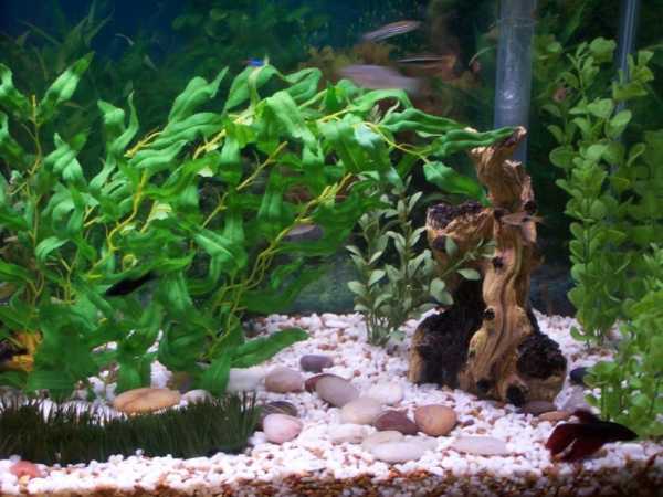 Объем декорированных предметов зависит от объема аквариума и количества в нем живущих рыбок.