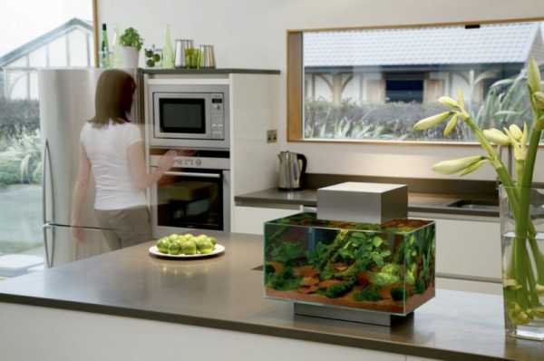 Возьмем к примеру Роберта Коленика и его проект Ocean Kitchen, который наделал много шума несколько лет назад. Этот невероятный островной кухонный стол не только практичен, но и красив, ведь это стол-аквариум. Какое грамотное использование пространства! Согласитесь, кухня, на которой размещен такой огромный островной стол, включающий вместительный аквариум, едва ли требует чего-либо еще в плане декора. Кормление рыбы может показаться сложным, но на самом деле столешница поднимается простым нажатием кнопки, что обеспечивает доступ для совершения всех необходимых манипуляций.