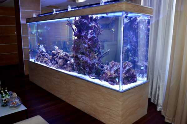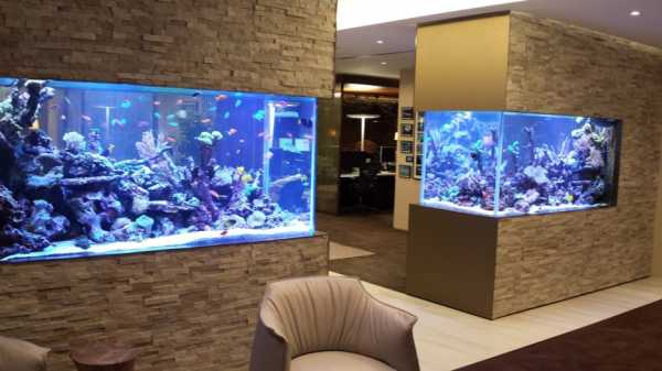 Рифовый морской аквариум от Okeanos Group – это нечто невероятное. Он не просто разделяет комнату: под впечатляющим аквариумом расположено еще и функциональное место для хранения. Конечно, аквариум с более простым водным ландшафтом обойдется вам дешевле, но рифовый относится к числу самых живописных из тех, которые вы когда-либо видели. С таким аквариумом вид помещения уже не имеет никакого значения.