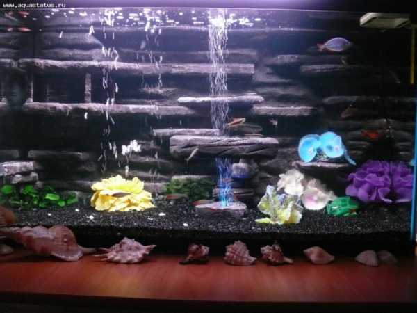 Фон ссади аквариума для рыбок не играет никакой роли. Он скорее необходим людям. С фоном аквариум становится красивее и оригинальнее. Он не вредит рыбкам.