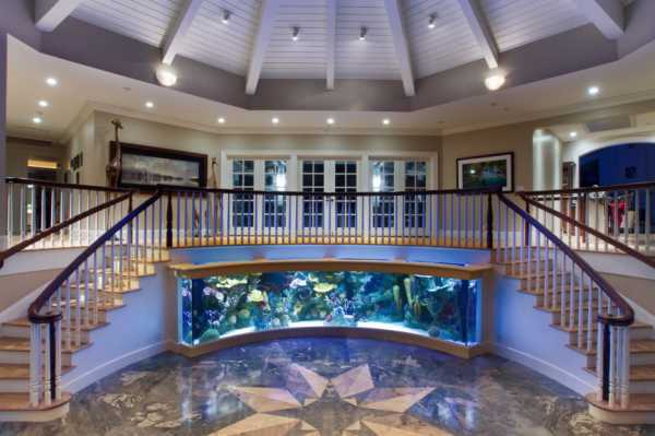 Поместье Rockwood в Коннектикуте ошеломляет открывающимся отсюда видом на одноименное озеро Роквуд. Дизайнеры из компании Wadia Associates решили усилить впечатление, установив здесь огромный разделяющий комнату аквариум. Его красотой можно наслаждаться, находясь в обеих частях помещения, которое он разделяет. И прозрачные стеклянные стенки позволяют естественному свету «путешествовать» по всему дому.