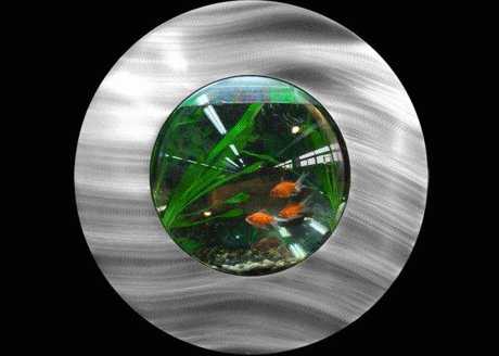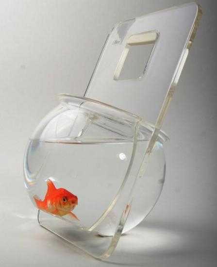 аквариум, выполненный в форме рыбки. Подводные жители, можно сказать, плавают внутри огромной скалярии. Выполнен он из стекла и матовой стали. фрактаааальне ^_^