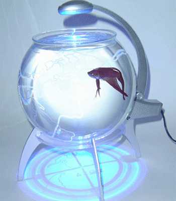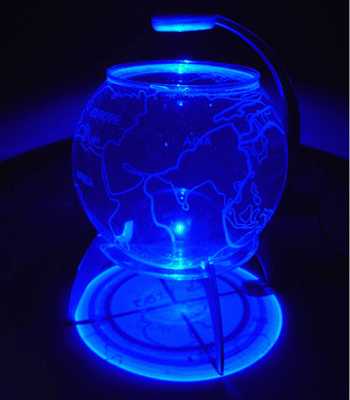Рыбка легко отправится в кругосветку при наличии аквариума — глобуса с неоновой подсветкой.