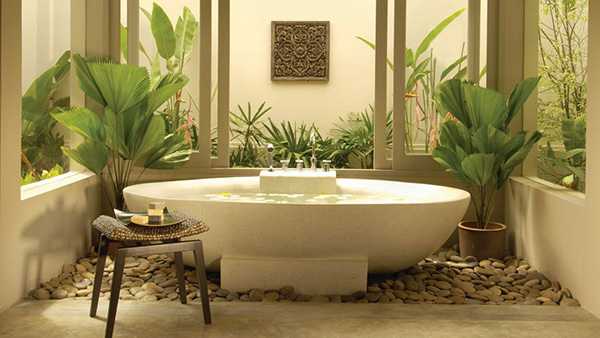 Поскольку современные ванные комнаты предназначены не только для купания, но и для релаксации, то в них стало популярным применять натуральные материалы. Конечно, отделка камнем или деревом со специальной влагозащитной пропиткой обходится очень дорого. Но вы вполне можете приобрести для своей ванной тумбочку под раковину с имитацией текстуры древесины, керамическую плитку под камень, плетеные корзины или даже просто комнатные растения. Пусть следующие красивые интерьеры ванных комнат послужат вам вдохновением!