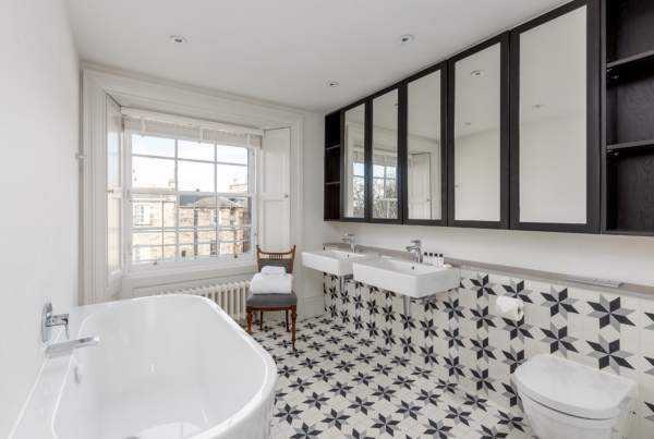 Если вы не собираетесь делать ремонт ванной комнаты, но хотите как-то украсить или обновить её дизайн, то используйте для этого обычный декор, который вы использовали бы для кухни, гостиной, спальни или любой другой комнаты в доме. Многие самые красивые ванные комнаты (в том числе и те, что на фото ниже) отличаются от остальных интересными шторами, картинами на стенах и полках, коврами на полу, удобными стульями и вазами с цветами.