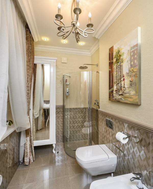 - Если ванна слишком маленькая, то стоит вовсе отказаться от ванны и приобрести душевую кабину.