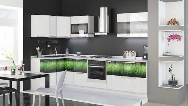 - Стекло, в большинстве случаев используют в верхних шкафчиках, так как оно придает легкости всему